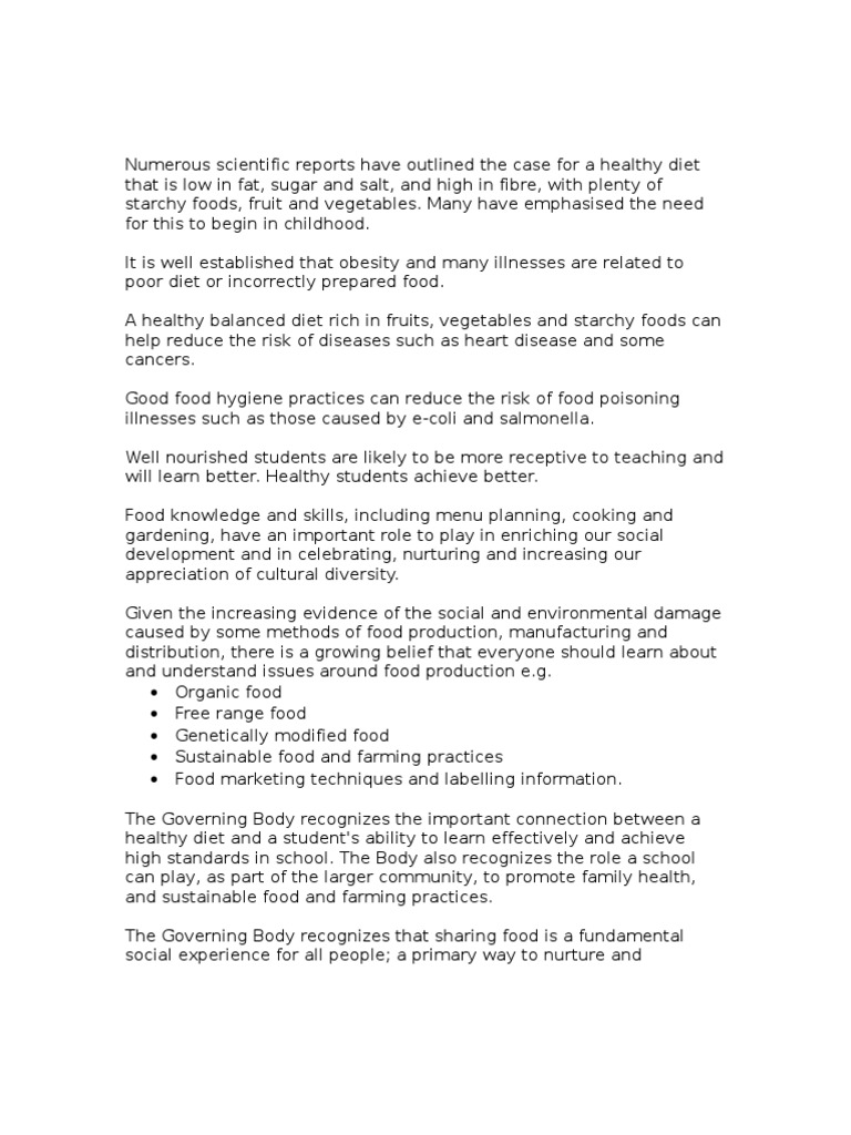 Healthy Eating Policy See Also The Separate Leaflet Called Exercise And Physical Activity.